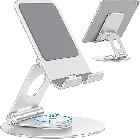 OMOTON Swivel Tablet Stand for iPad with 360 Rotating Base, Foldable Adjustable Holder for Drawing, Compatible with iPad Pro/Air/Mini and More, Silver