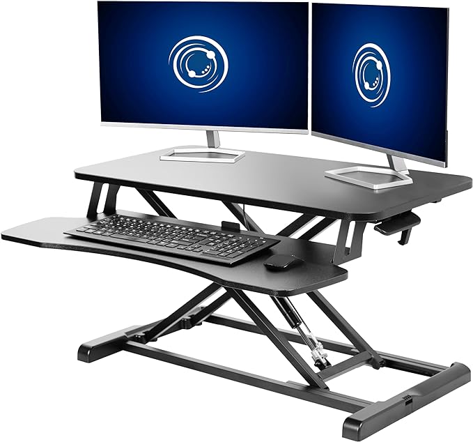 VIVO 32 inch Desk Converter, K Series, Height Adjustable Sit to Stand Riser, Dual Monitor and Laptop Workstation with Wide Keyboard Tray, Black, DESK-V000K