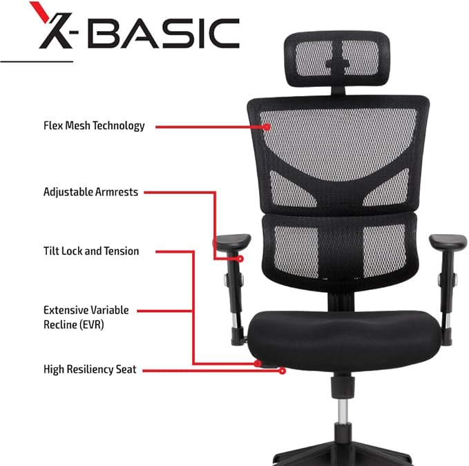 X-Chair X-Basic Task Chair, Black Flex Mesh – Ergonomic Office Seat/Adjustable Backrest/Foam Seat/Relaxed Recline/Perfect for Office or Home Desk