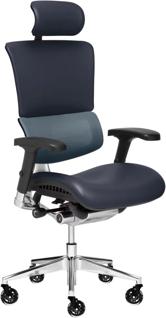 X-Chair X-Tech Executive Chair – High End Executive Chair with Cooling Gel M-Foam Seat/Ergonomic Office Seat for Lower Back Support/Soft Brisa & A.T.R. Fabric/Perfect for Office Or Boardroom (Navy)